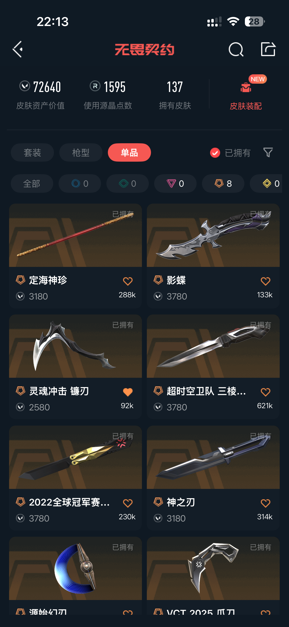 首页 > 租号大厅 > 无畏契约-wegame > wegame/wegame > 钻石1可排位 三棱军刺 金箍棒 神之刃 源始幻刃 狼队小肥爱用的镰刀 影蝶 22蝴蝶vct爪刀