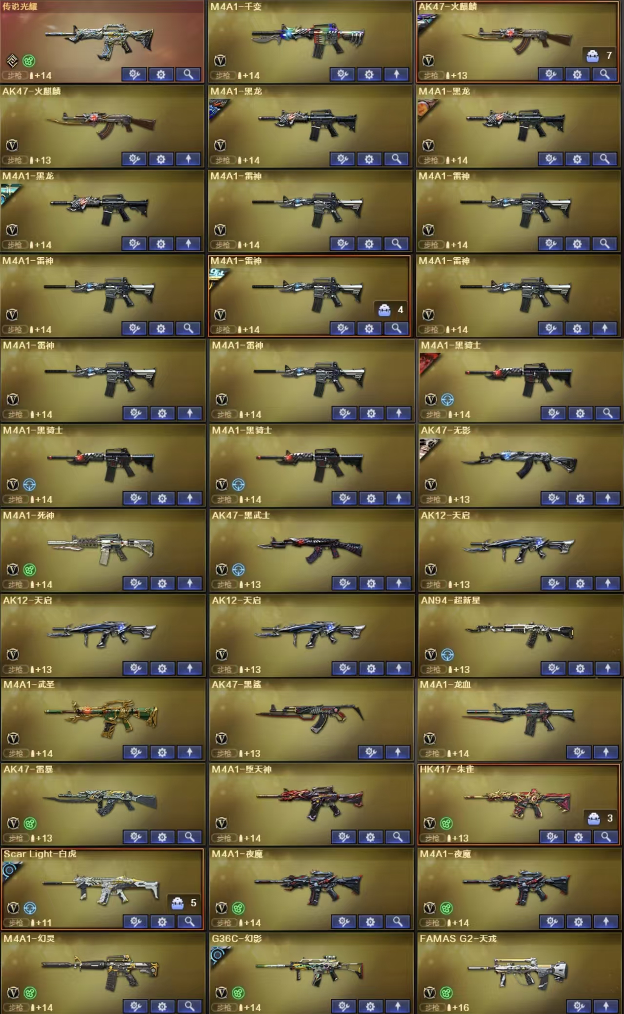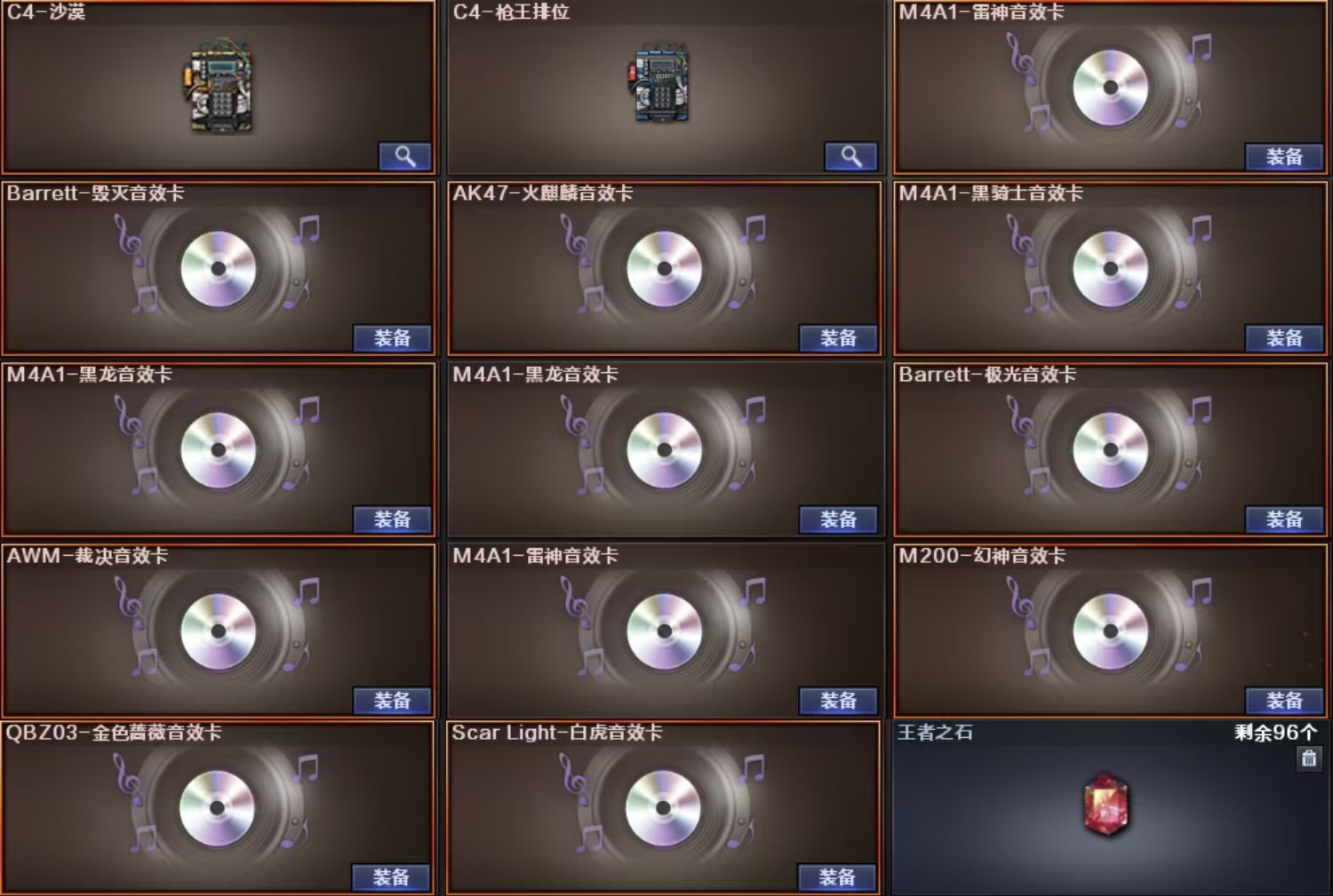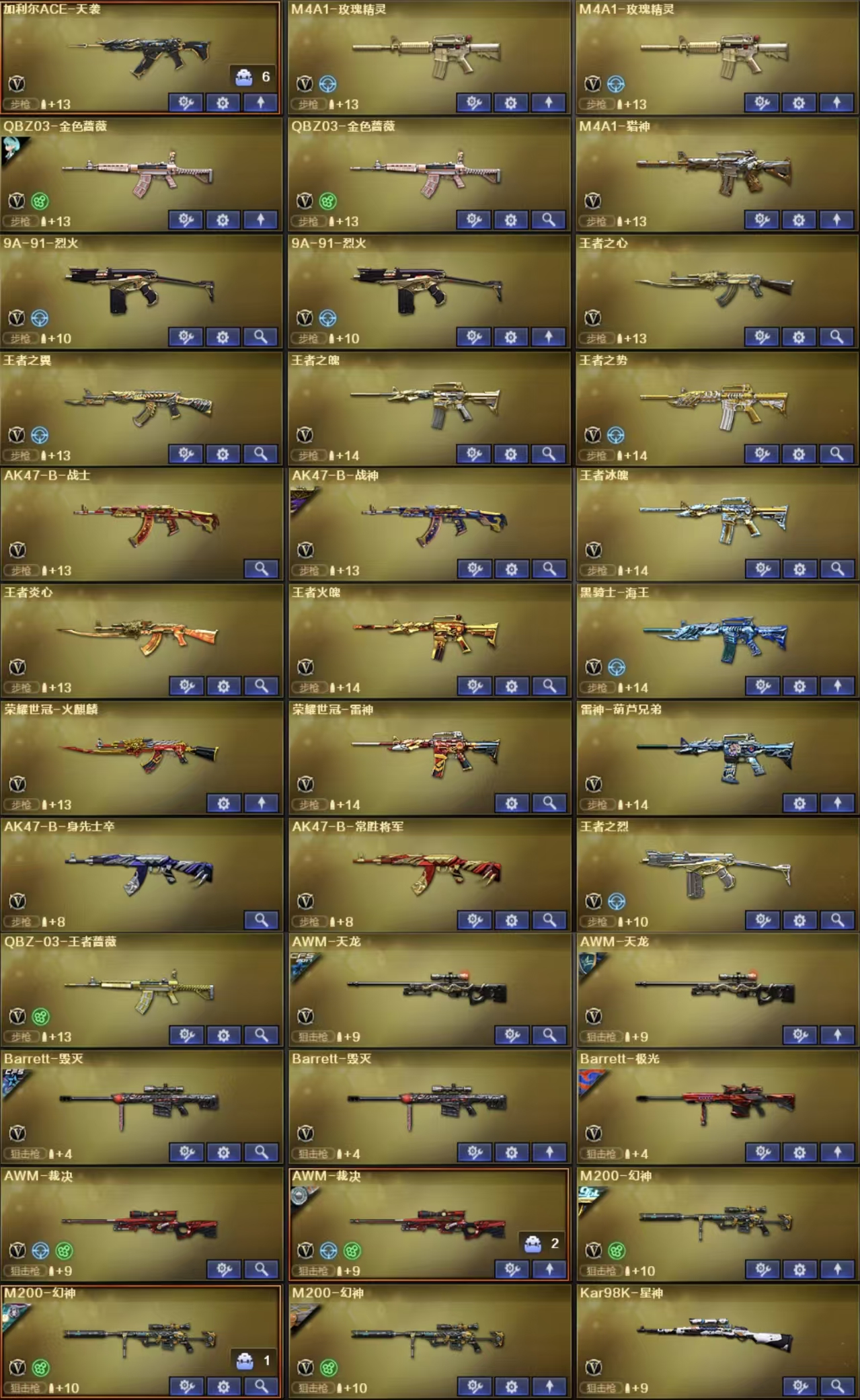 G36C幻影/幻神音效卡、裁决音效卡、白虎音效卡、金色蔷薇音效卡、,幻神欧欧皮肤;USP-雷暴,荣耀世冠-柯尔特,电竞教官-云悠悠,RPK-盘龙,QBZ03-金色蔷薇,G36C-幻影,M200-幻神,