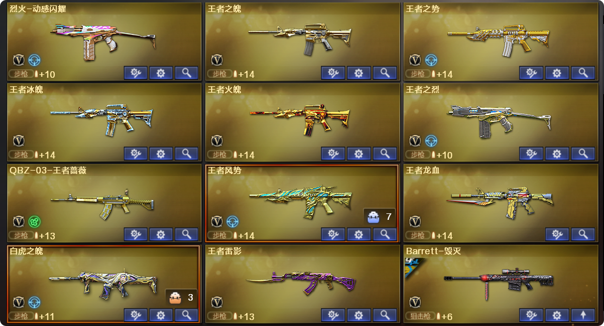 六盘六烈,各类型狙击步枪刀,热门冷门武器多多,适合模式多多,总有一款适合你;传说幽冥,炽芒蝶刃,传说星骇,电竞教官-云悠悠,晴雅,RPK-盘龙,QBZ03-金色蔷薇,