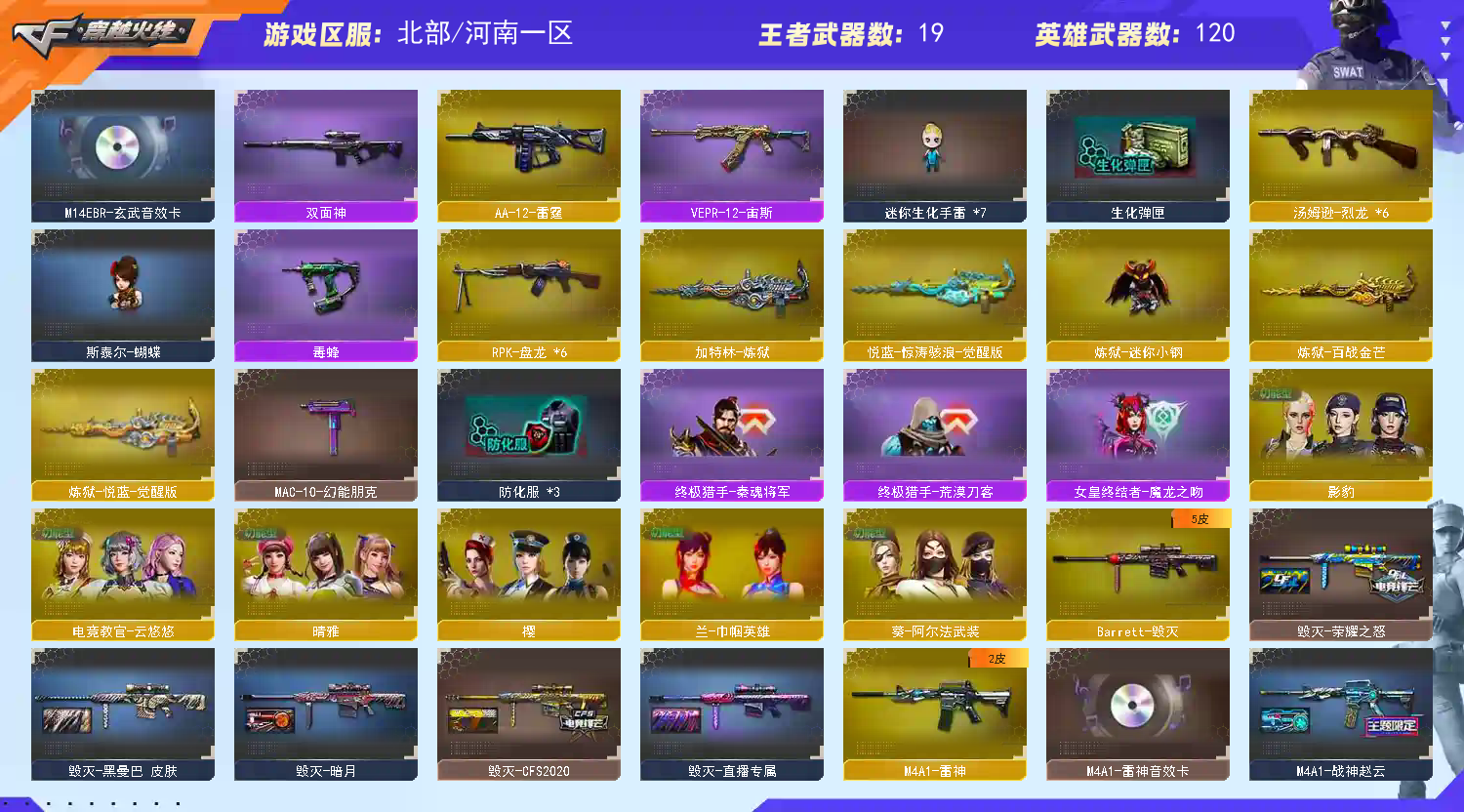 首页 > 租号大厅 > 穿越火线 > 北部/河南一区 > 生化号/爆破号/各种热门武器/传说武器/王者武器/炽芒蝶刃/
