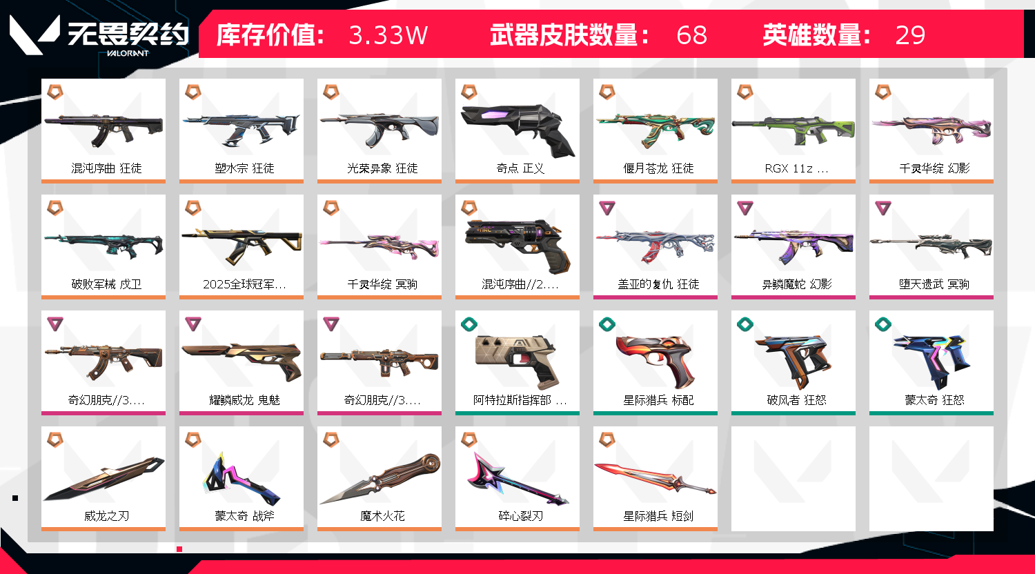 • 皮肤资产价值: 33280