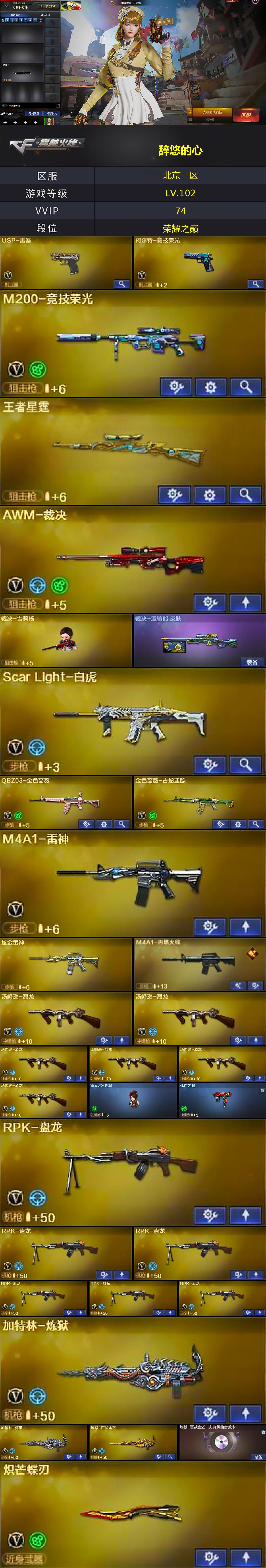 M200竞技荣光全套❤️王者星神❤️裁决❤️白虎❤️炽芒蝶刃❤️6烈蝴蝶❤️6盘炼狱❤️QBZ蔷薇