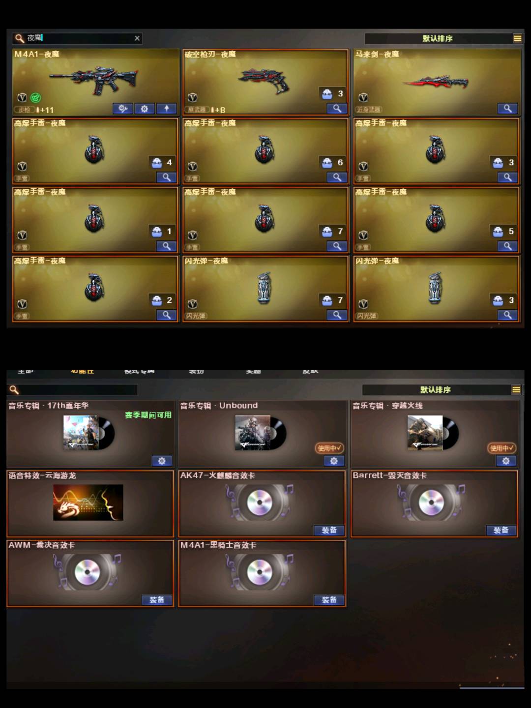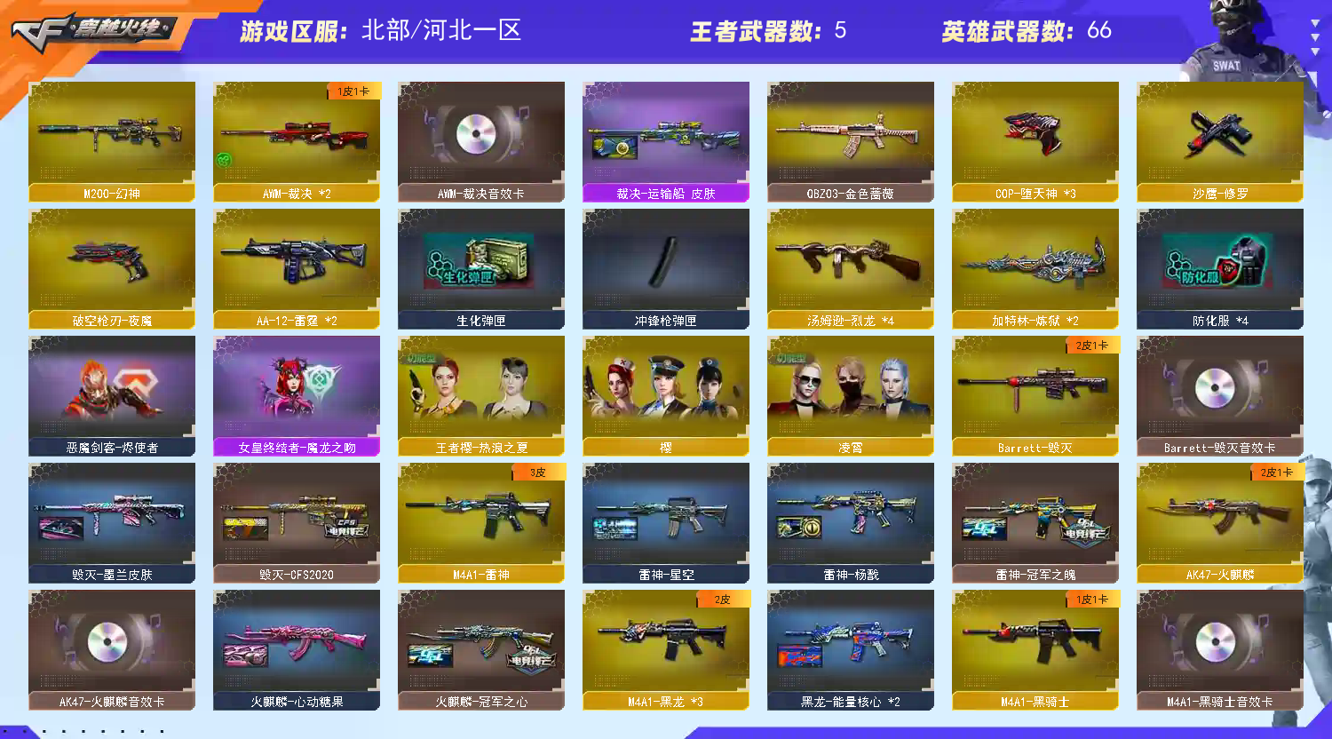 可打字❤M200幻神❤裁决音效卡+运输船❤3把COP堕天神❤金色蔷薇❤7套夜魔套❤六烈龙❤青龙朱雀