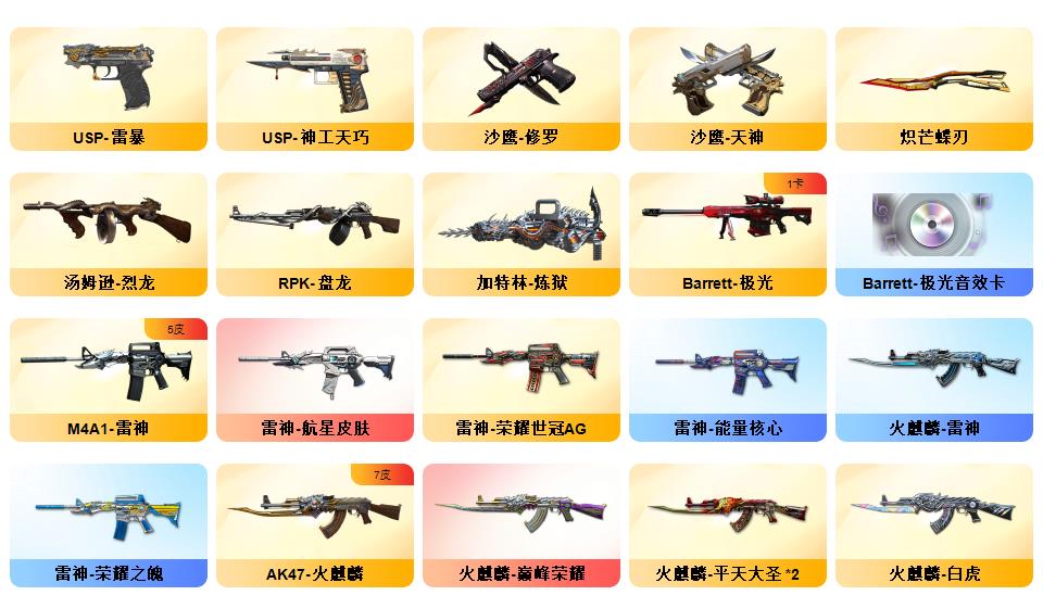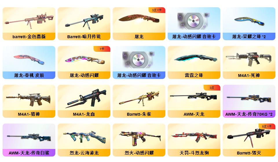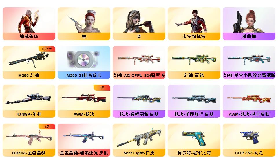 【神威莲华】【幻神3皮/星火小队/AGCFPL S24冠军/青鹤】毁灭战神张飞/毁灭耀金/毁灭暗月/极光能量核心/极光高能霹雳 /天龙传奇70KG/天龙传奇白鲨/ _葵/_樱/M200-幻神/Barrett-毁灭(5)/Barrett-极光(5)/Barrett-朱雀/barrett-金色蔷薇/M200-幻神音效卡/M4A1-黑骑士音效卡/Barrett-毁灭音效卡/Barrett-极光音效卡/屠龙-动感闪耀 音效卡