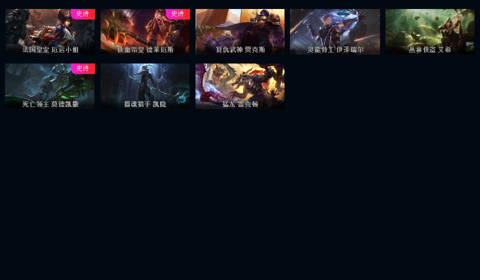 【德玛西亚】168英雄598皮肤 黑龙瞎/哥特安妮/钢铁军团拉克丝/卧虎藏龙贾克斯/龙刀/二周年诺手/周年女枪/电玩锐雯/龙猴/创世纪/地底世界卡牌/情人节卢锡