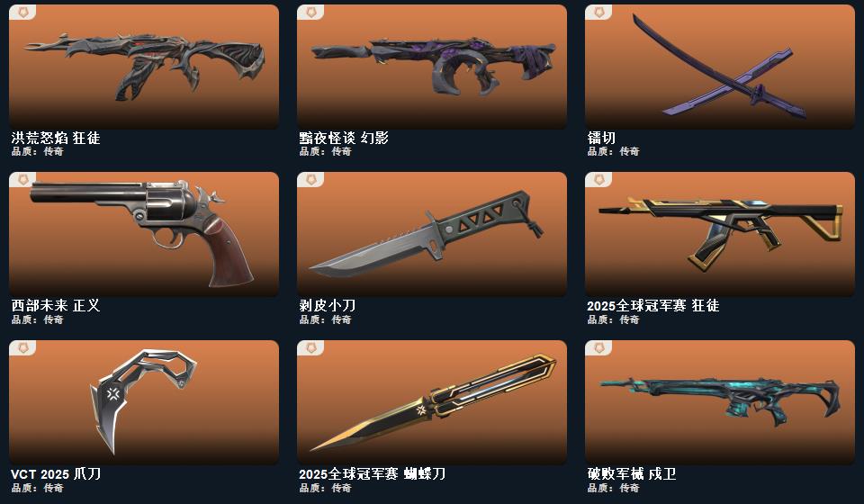 2025全球冠军赛套装,噬影者套装,VCT 2025 赛季套装,西部未来套装,异鳞魔蛇套装
