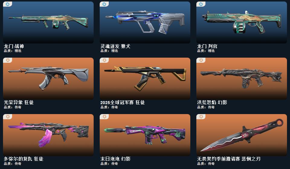 VCT 2026 赛季套装,无畏契约季前邀请赛套装,ORA x 颗秒套装,多弥尔的复仇套装,末日泡泡套装
