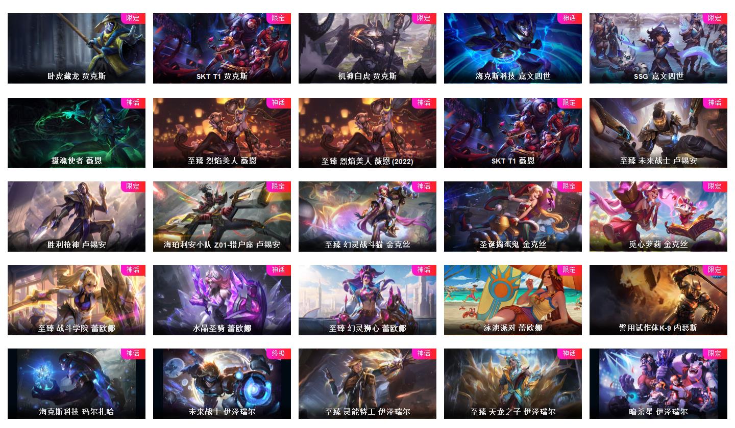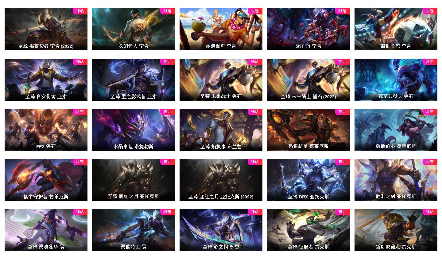 真实1634皮/可排位/23神话/13至臻/166限定/76传说/至臻亚索-劫-塞纳-万豪-ez-剑姬-刀妹等/海克斯科技薇恩/龙/超多年限/冠军皮肤超多精