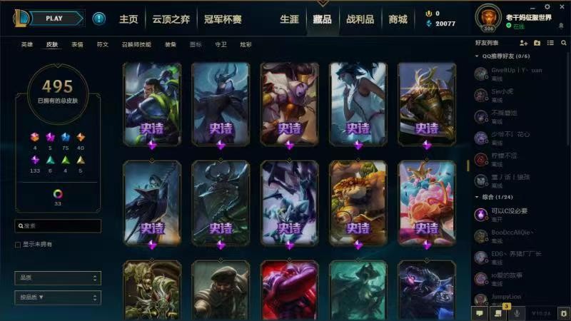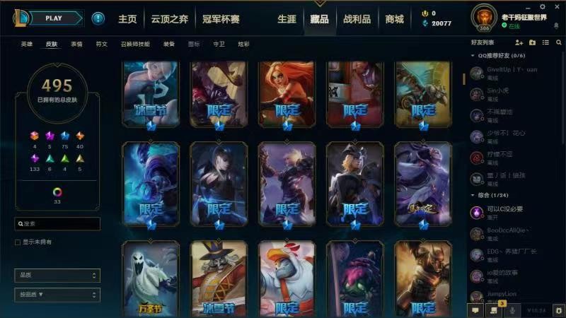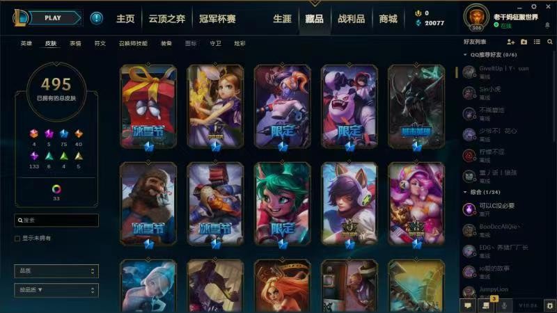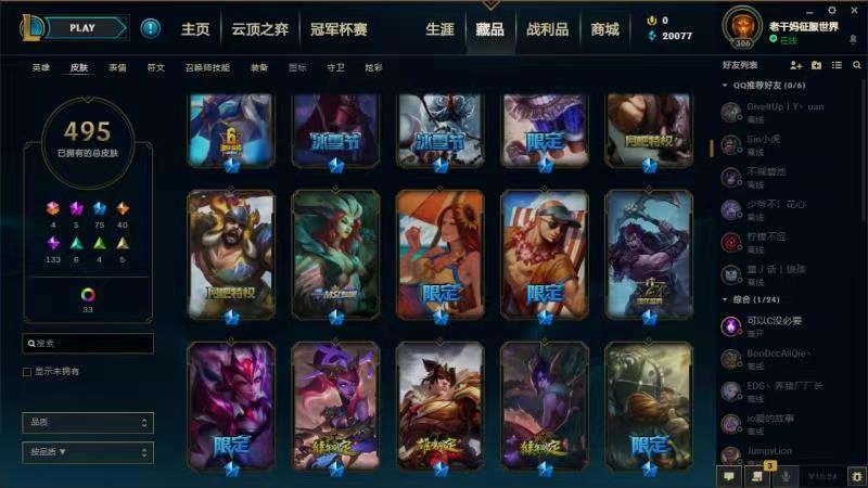 【暗影岛】英雄157皮肤495 勇敢的心诺手 星守ez dj琴女 大元素天使 灵魂守卫 武装战姬 海克斯皇子 鳄鱼 猪妹 梦游仙境安妮 暗杀星发条 努努 广寒仙子 鸡里奥 纳财大帝塔姆 神拳李青 苹果机器人 IG卡莎 地狱之门加里奥 灌篮高手 烈焰熊心小炮 丧尸布兰德 神拳李青 蔷薇绅士杰斯 星守金克斯 源计划VN 霸天剑魔 海牛猎手小鱼